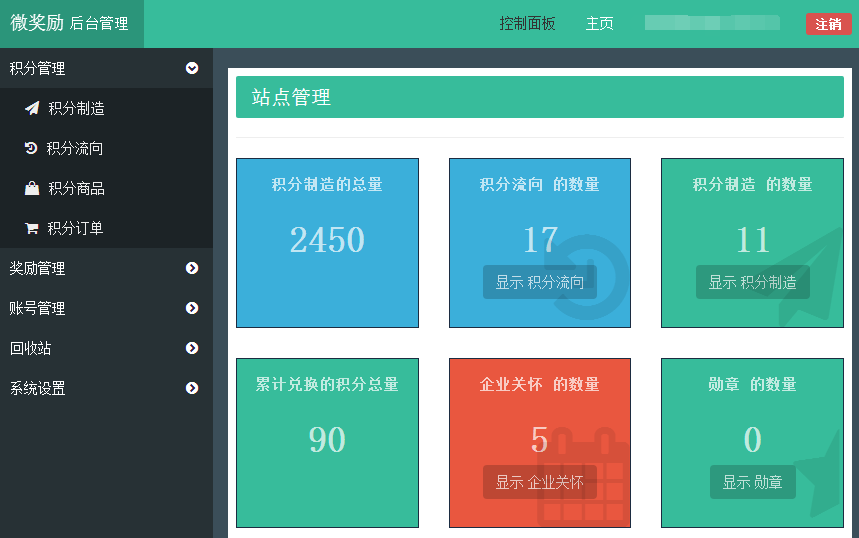 平台部署,实现企业关怀、积分管理、奖励管理、用户管理、数据展现等。